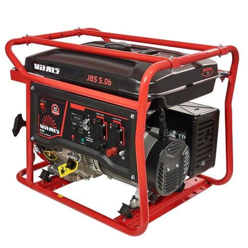 Бензиновий генератор Vitals JBS 5.0b — це компактний переносний електричний агрегат, призначений для резервного або аварійного живлення побутових споживачів. Виробляє однофазний змінний струм 230 В, частотою 50 Гц.