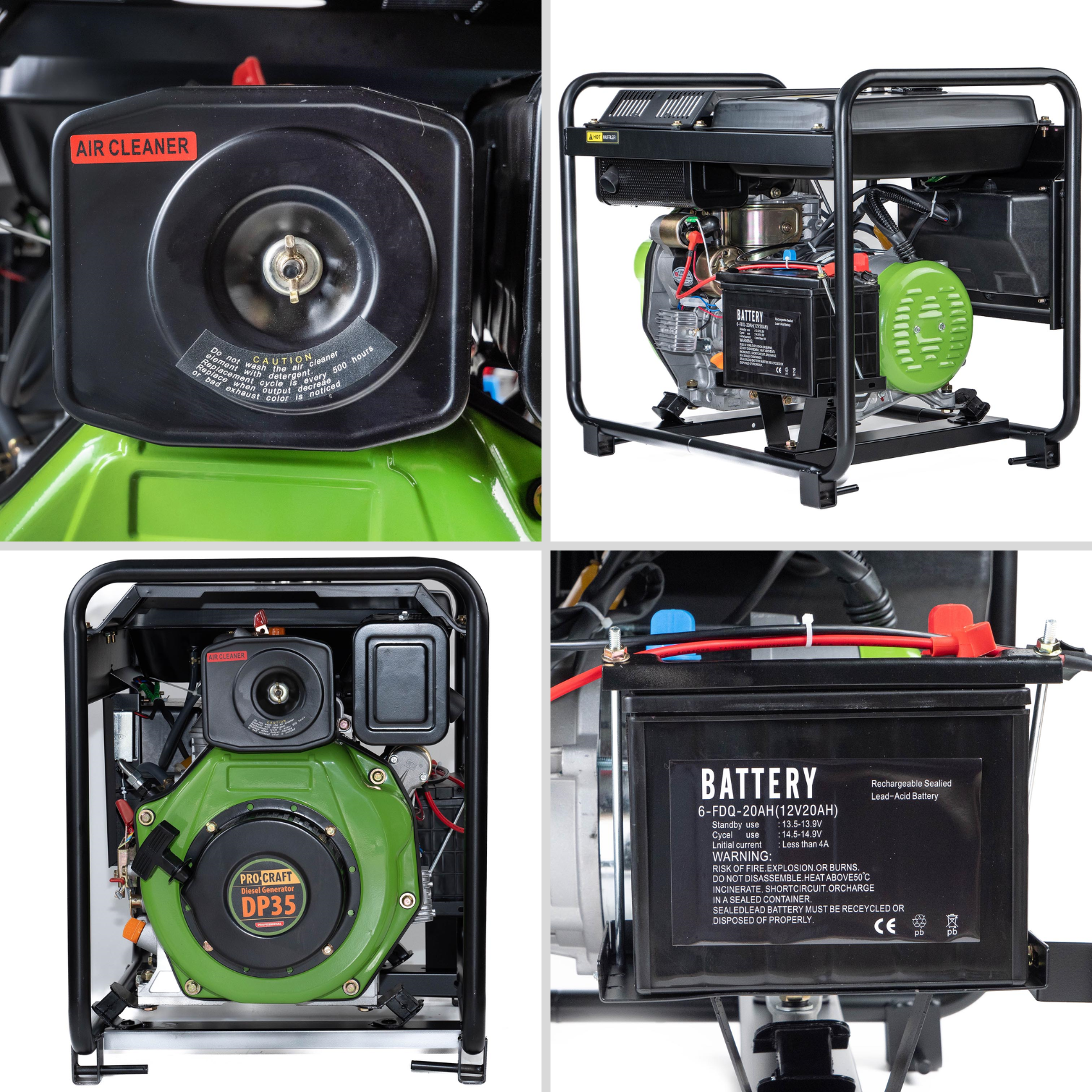 Генератор дизельний Procraft DP35 рекомендується для використання у господарстві, будівництві, ремонтних роботах і багатьох інших областях. Він дозволяє надійно забезпечити електроенергією всі потреби у різних сферах застосування.