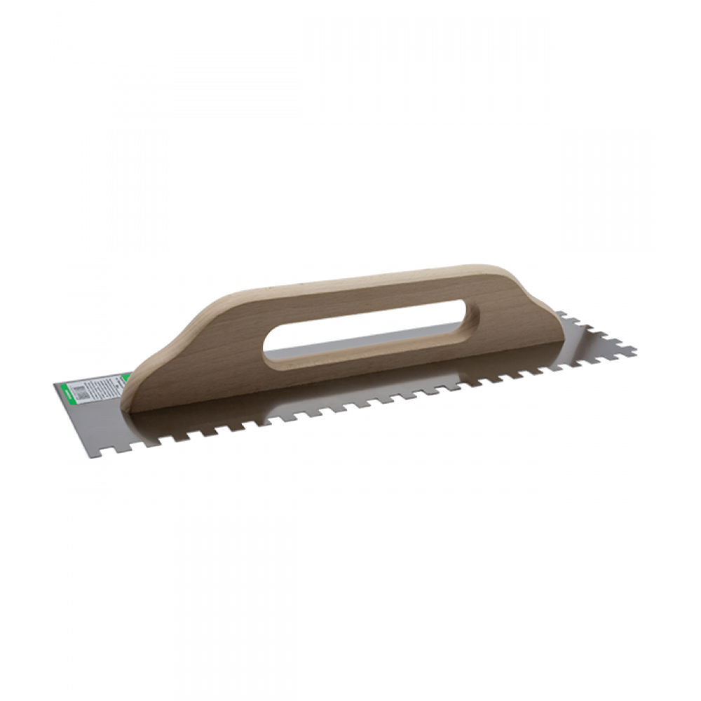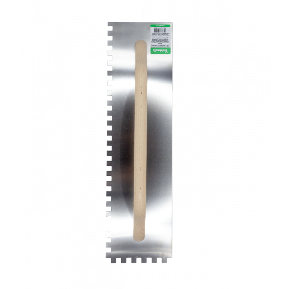Гладилка Yoshimoto нержавіюча, тип "Швейцарська", зуб 1212 мм, 480 мм — професійний інструмент, призначений для нанесення клейових розчинів під час укладання плитки, монтажу газобетонних блоків та утеплення фасадів. Оснащена зубцями 1212 мм, які забезпечують рівномірний розподіл клею по основі, що покращує зчеплення матеріалів. Виготовлена з міцної нержавіючої сталі, що гарантує довговічність та зносостійкість. Збільшена довжина полотна 480 мм дозволяє ефективно працювати на великих площах, скорочуючи час виконання робіт.