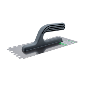 Гладилка Yoshimoto нержавіюча з пластмасовою ручкою, зуб 88, 270 мм — призначена для нанесення клейових сумішей при укладанні плитки, монтажі газоблоків та утепленні фасадів. Виготовлена з нержавіючої сталі, оснащена зручною пластмасовою ручкою. Зубці розміром 88 мм забезпечують рівномірне розподілення клею. Довжина інструмента — 270 мм.