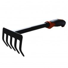 Граблі 5-ти зубчасті з двокомпонентною рукояткою призначені для робіт у саду. Вони мають стальну конструкцію з крученими зубцями, що дозволяє ефективно збирати листя та різні сміття. Граблі оснащені держаком, який забезпечує зручний і надійний захват. Їх можна використовувати універсально, для різних видів робіт у саді.