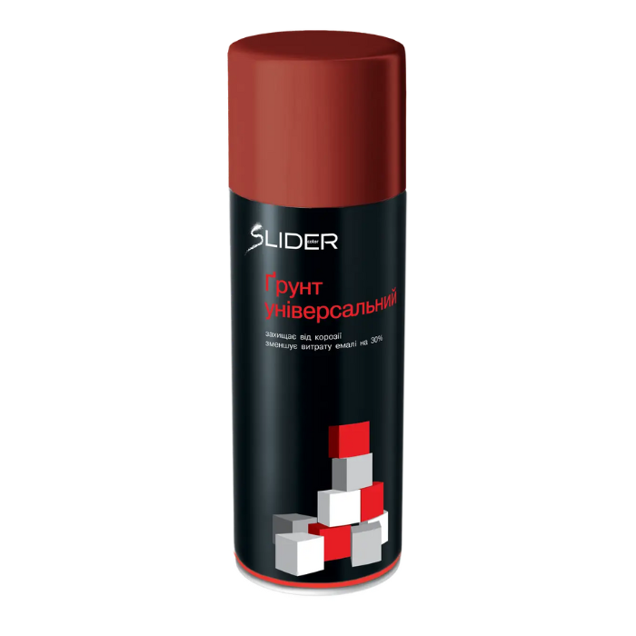 Grun SLIDER color є універсальним червоним грунтом, який має алкідну основу. Він призначений для використання на металевих та дерев'яних поверхнях. Цей грунт має напівматове покриття, що надає поверхні елегантний вигляд. Він швидко висихає, що дозволяє зекономити час при роботі. Об'єм цього грунту становить 400 мл.