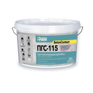 Ґрунтовка кварцова адгезійна ПГС-115 BetonContact PRO – готова до використання рідина з покращенною формулою, призначена для підготовки мінеральних та інших складних гладких, щільних, не вбираючих вологу поверхонь (монолітний бетон, бетонні стелі, збірні залізобетонні конструкції, глазурована керамічна плитка, скло, гіпсокартон, ДСП, силікатна цегла тощо) перед нанесенням штукатурок, шпаклівок, облицюванням плиткою, улаштуванням високоміцних стяжок, самовирівнювальних підлог. Створює міцну шорстку поверхню, значно збільшує адгезію. Може використовуватись при влаштуванні підлог з підігрівом. Дозволяє покращити адгезію плитки без демонтажу старої, тобто методом «плитка по плитці». Для зовнішніх та внутрішніх робіт