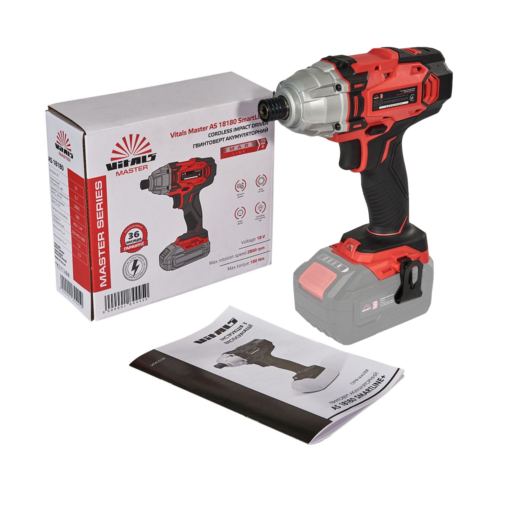 Основні переваги гвинтокрута акумуляторного Vitals Master AS 18180 SmartLine+: - Портативність і зручність використання завдяки бездротовій роботі на акумуляторі; - Довгий термін служби завдяки безщітковому двигуну; - Висока ефективність і продуктивність завдяки безударному режиму роботи; - Можливість використовувати з широким спектром насадок завдяки 1/4" посадковому місцю; - Підходить для використання в будівництві і ремонті різних матеріалів.