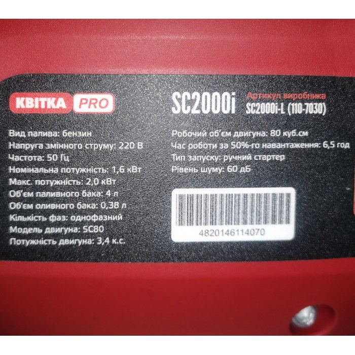 Генератор КВІТКА PRO SC2000i має надійну якість побудови, високу ефективність і зручний дизайн. Він забезпечить надійне електропостачання в будь-яку погоду та умови.