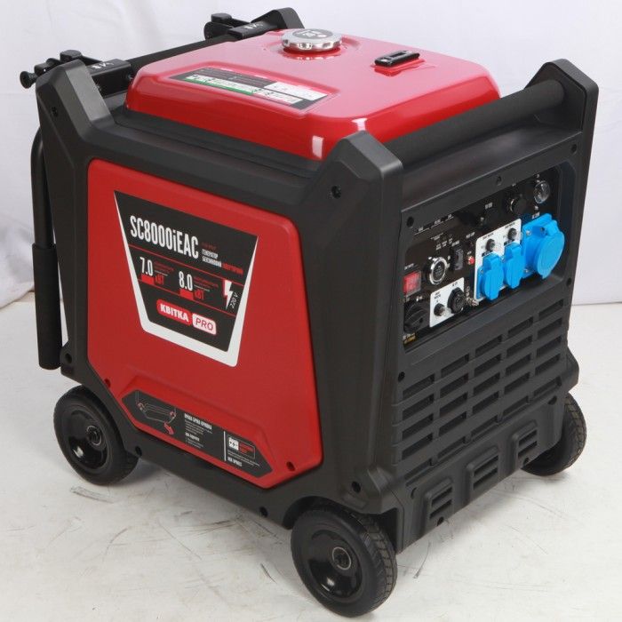 Перевагами Інверторного бензинового генератора КВІТКА PRO SC8000iEAC є велика потужність, автоматична система підключення, економічність та компактність.
