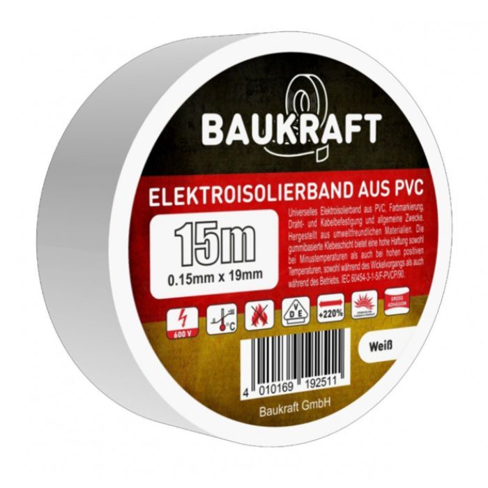 Якісна ізоляційна стрічка з полівінілхлориду (ПВХ), призначена для електромонтажних робіт. Вона ефективно захищає дроти від вологи, ультрафіолету та механічних впливів. Біла стрічка гармонійно поєднується з різними типами інтер’єрів.