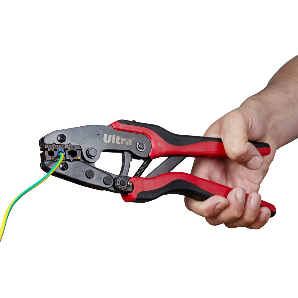 Кліщі ULTRA 4372032 призначені для обпресування ізольованих кабельних клем у діапазоні від 0,5 до 6 мм². Інструмент забезпечує надійне та рівномірне з’єднання провідника з клемою, що підвищує якість електроконтакту та довговічність монтажу. Ергономічні рукоятки з протиковзним покриттям роблять роботу комфортною навіть при тривалому використанні.
