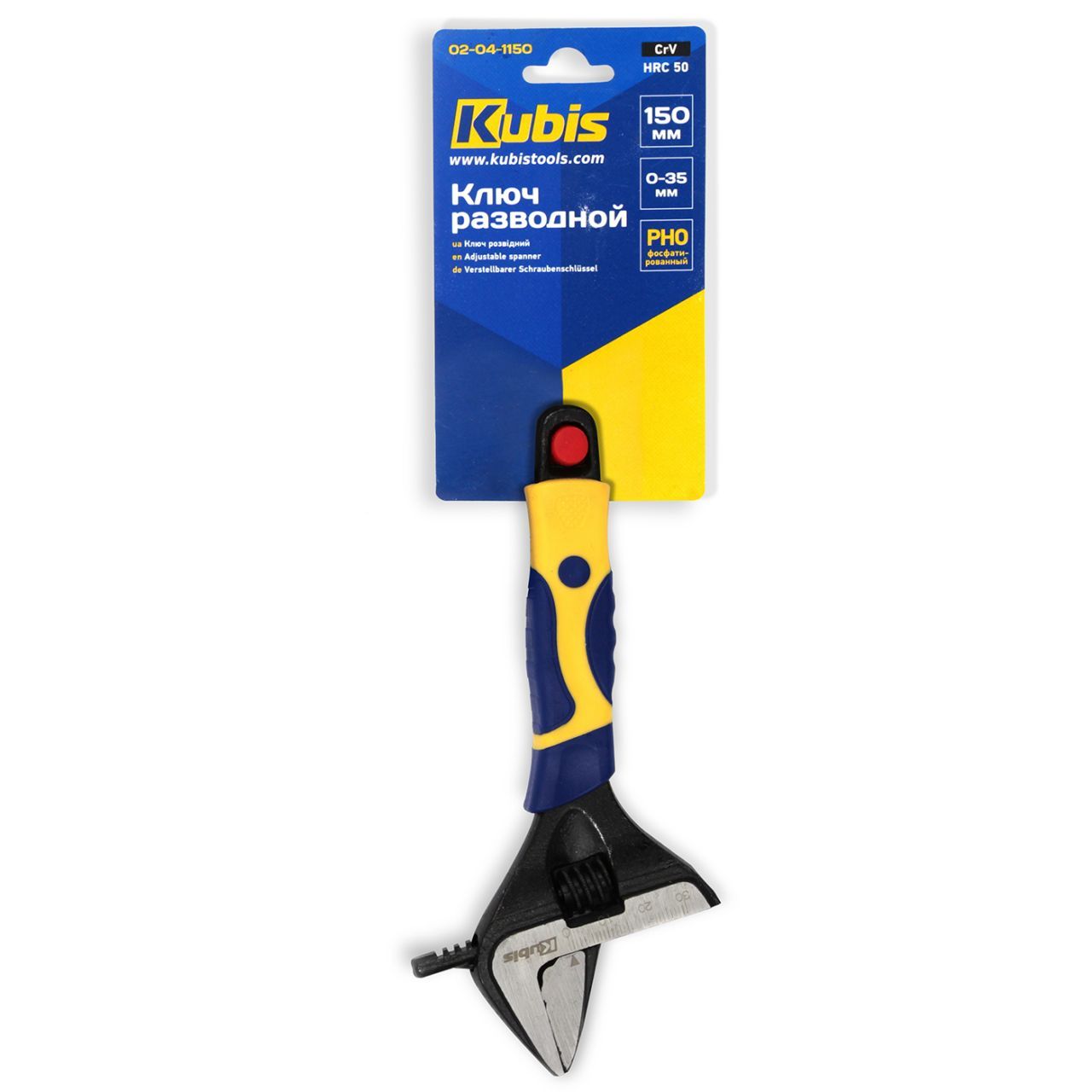 Ключ розвідний з тонкими губками 150 мм, 0-35 мм, CrV, фосфатирований. Цей розвідний ключ використовується для відкручування або закручування гвинтів з різними розмірами, від 0 до 35 мм. Виготовлений з металу CrV, що забезпечує міцність і довговічність. Довжина інструменту становить 150 мм, що дозволяє зручно працювати навіть у важкодоступних місцях.