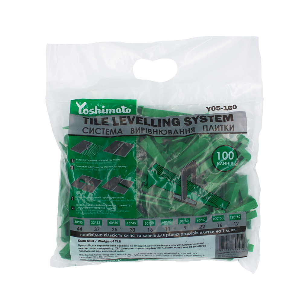 Клини для плитки Yoshimoto, 100 шт (пакет) — призначені для використання в системі вирівнювання плитки разом із кліпсами та спеціальними кліщами.