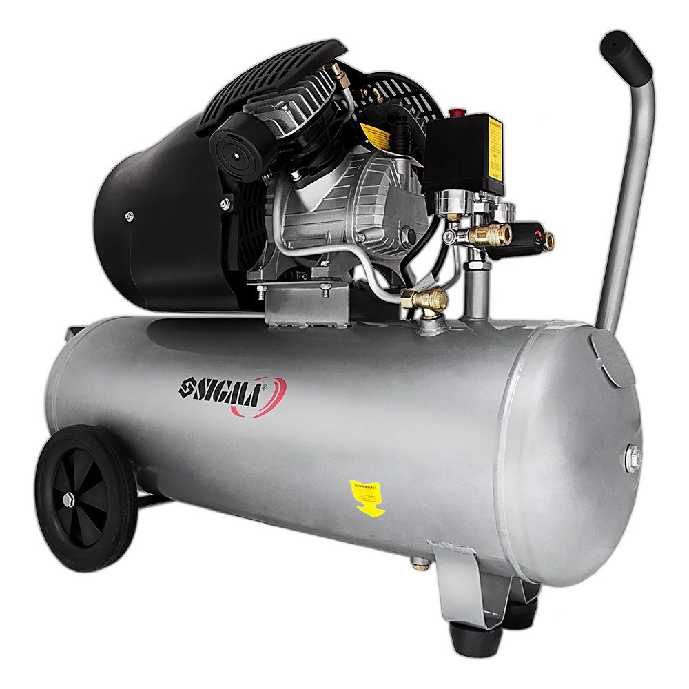 Модель компресора Sigma 7043721 має потужність 2.5 кВт і великою продуктивністю 455 л/хв з високим тиском (до 10 бар). Застосовується в будівництві і невеликому виробництві, на СТО і майстерень.