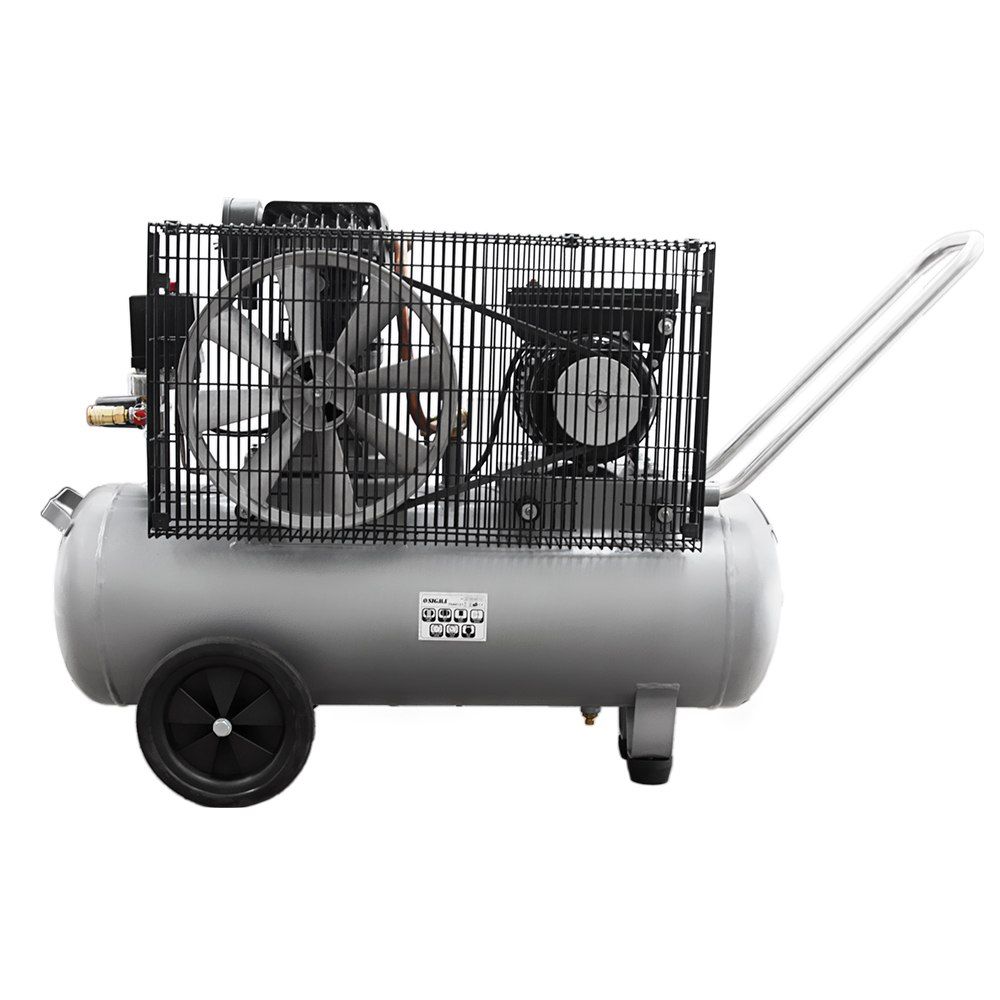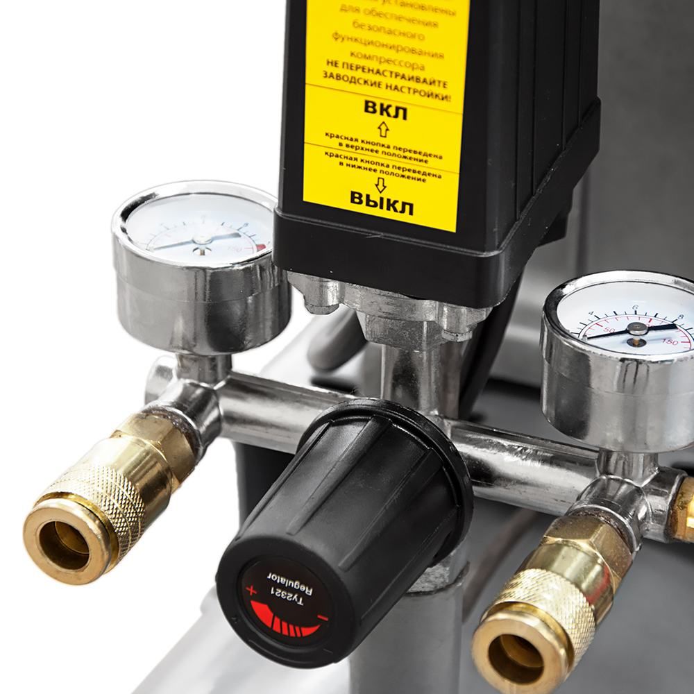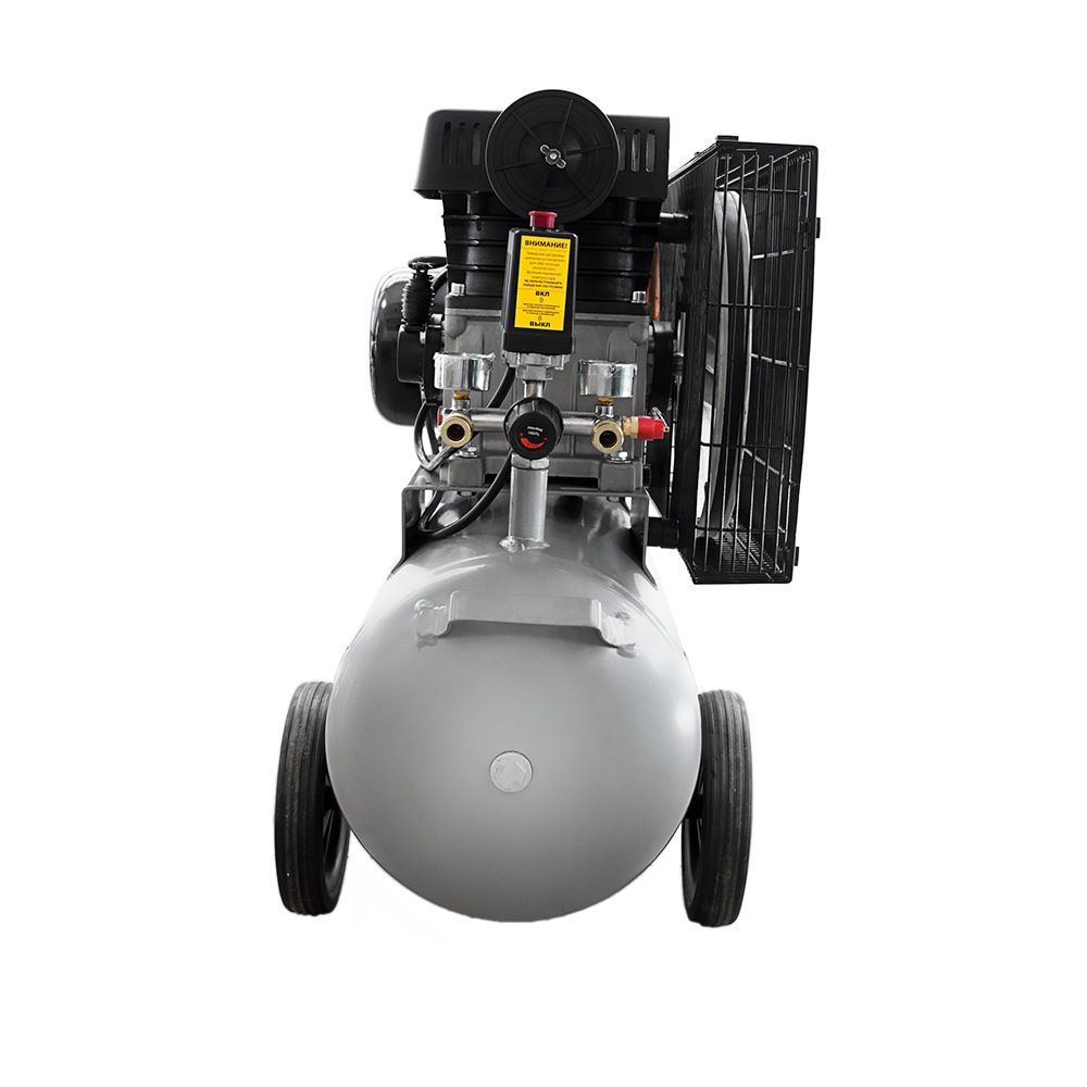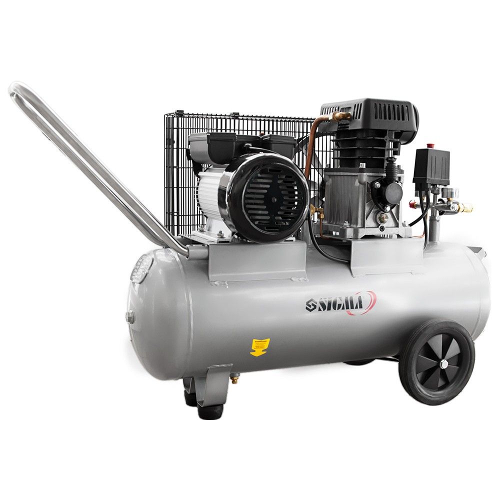 Компресор двоциліндровий ремінний 2.5кВт 335л/хв 10бар 50л (2 крана) SIGMA (7044121) призначений для нагнітання стисненого повітря з подальшою його подачею під тиском в різні типи пневмоінструменту і пневмообладнання. Ремінний привід компресора закритий металевим кожухом, який запобігає від попадання сторонніх предметів. Опорна ніжка забезпечує стійке положення на поверхні, а гумова подушечка знижує рівень вібрації.