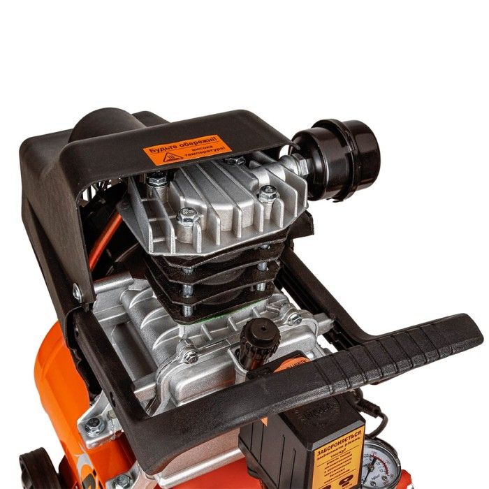 Цей компресор має зручну ручку для перенесення, вбудований манометр для контролю тиску та захист від перегріву.