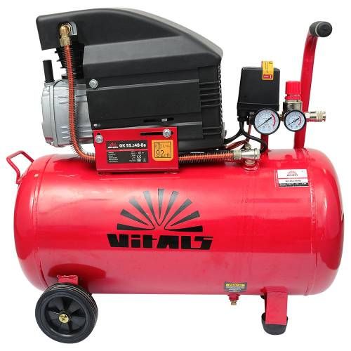 Vitals GK55.t48–8a — повітряний компресор, який ідеально підійде для використання в побутових цілях. Водночас висока якість та технічні характеристики дають змогу використовувати цей агрегат також у професійних цілях, наприклад, на невеликих підприємствах. Компресор має прямий привід обертання з електродвигуна на колінвал циліндра. Для змащення застосовується компресорна олива. Достатня потужність двигуна та великий діаметр поршня забезпечують агрегату високу продуктивність. Її цілком вистачає для більшості потреб: