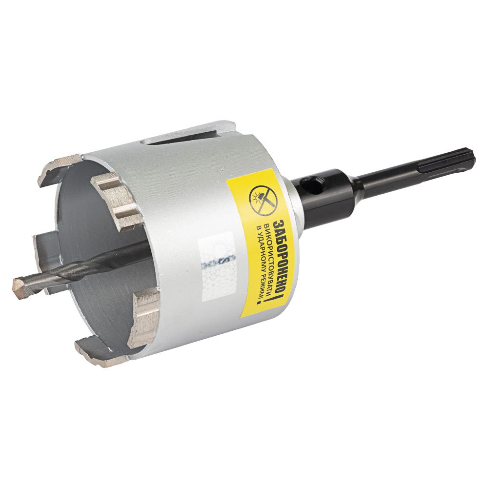 Набір включає коронку з внутрішнім різьбовим отвором М162, хвостовик SDS-plus, центрувальне твердосплавне свердло і клин для видалення свердла з хвостовика.