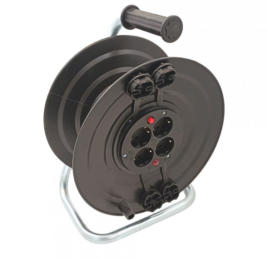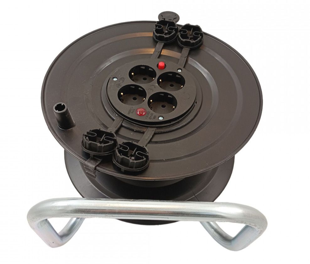 Багатофункціональна котушка від бренду — це зручне та надійне рішення для зберігання, транспортування та експлуатації подовжувачів різної довжини та характеристик. Завдяки ручці на торці, змотування і розмотування кабелю відбувається легко й швидко.