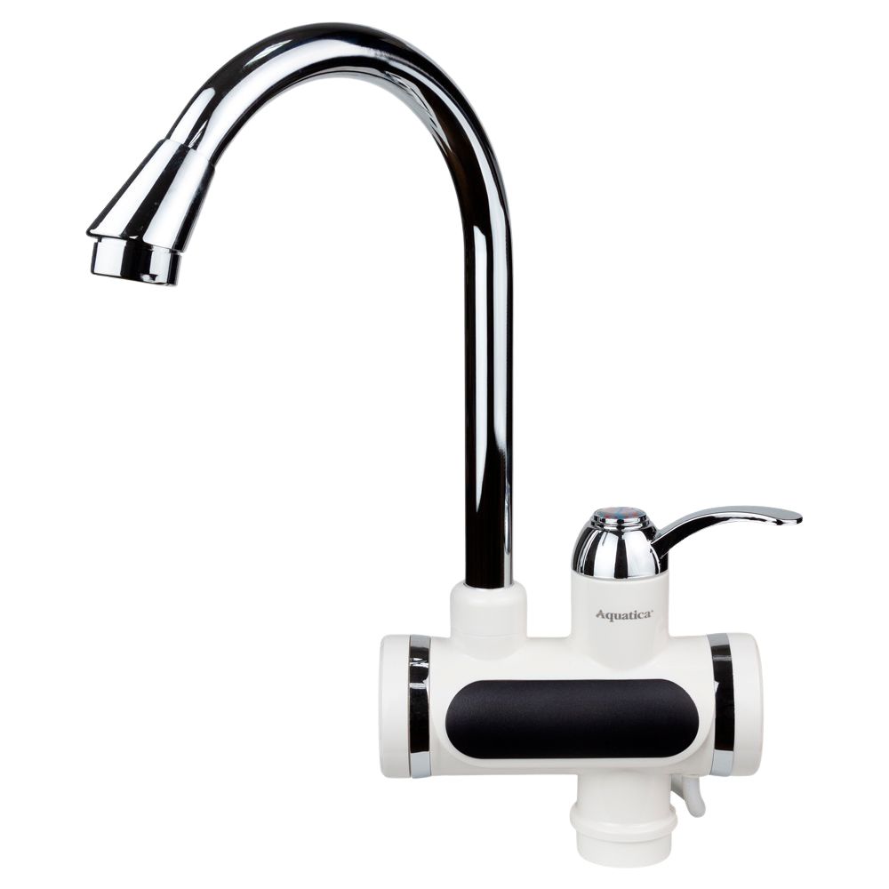 Кран-водонагрівач проточний AQUATICA JZ-6B141W, 3.0 кВт, для кухні, гусак «вухо» на гайці, з дисплеєм.