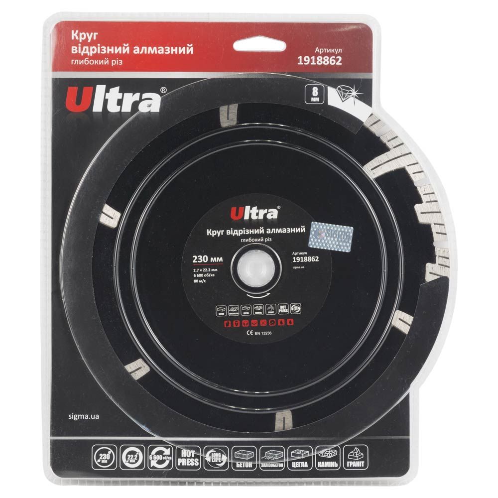 Круг відрізний алмазний Глибокий різ 23022.2мм ULTRA (1918862) призначений для різання бетону, залізобетону, тротуарної плитки, граніту, шиферу, черепиці, цегли, каменю та інших будівельних матеріалів без примусового охолодження. Корпус виготовлений із міцної сталі, здатної витримати значні механічні навантаження та високу температуру. Добре збалансована основа зменшує вібрацію на інструмент та забезпечує високу надійність під час експлуатації.