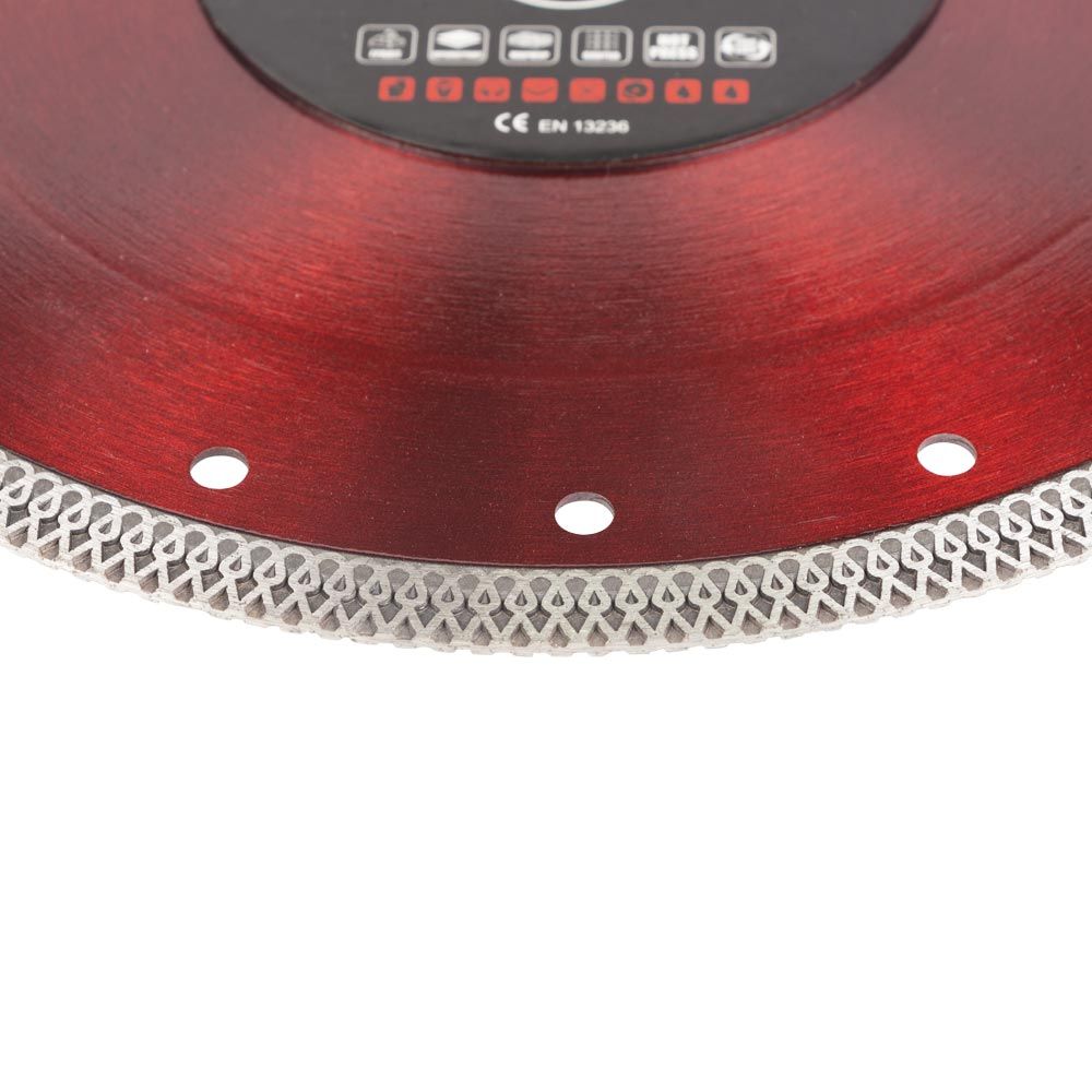 Ультратонка Х-подібна ріжучв кромка дозволяє проводити різання не тільки з примусовим охолодженням, але і без нього. Висока консентрація алмазів дрібної фракції, а також мінімально можлива товщина круга, забезпечують мінімальне тертя в матеріалі, що розрізається, високу швидкість різу і підвищену чистоту кромок.