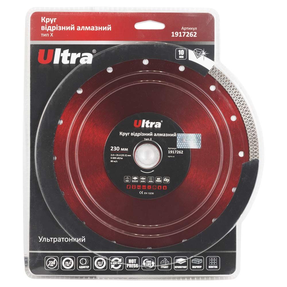 Круг відрізний алмазний тип Х 23025.4 (22.2)мм ULTRA (1917262) призначений для різання потовщеного граніту та керамограніту, кахлю, плитки, мармуру. Корпус виготовлений із міцної сталі, здатної витримати значне механічне навантаження та високу температуру.
