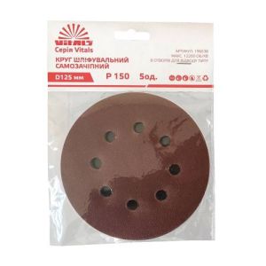 Опис круга шліфувального самозачіпного Vitals 125 мм, 8 отв., з. – 150, 5 од.