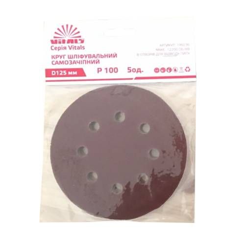 Опис круга шліфувального самозачіпного Vitals 125 мм, 8 отв., з. – 100, 5 од.