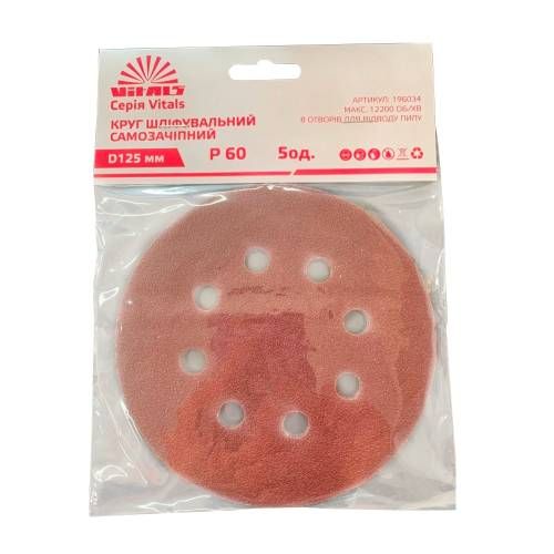 Опис круга шліфувального самозачіпного Vitals 125 мм, 8 отв., з. – 60, 5 од.