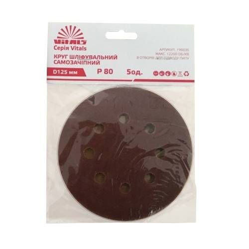 Опис круга шліфувального самозачіпного Vitals 125 мм, 8 отв., з. – 80, 5 од.
