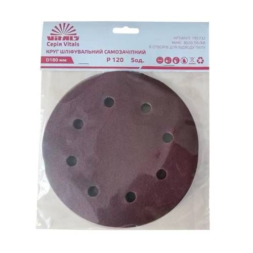 Опис круга шліфувального самозачіпного Vitals 180 мм, 8 отв. з. – 120, 5 од.