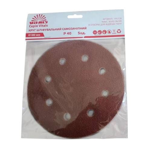 Опис круга шліфувального самозачіпного Vitals 180 мм, 8 отв. з. – 40, 5 од.