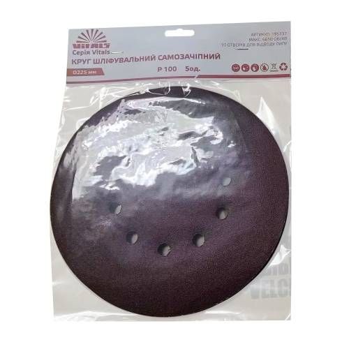 Опис круга шліфувального самозачіпного Vitals 225 мм, 10 отв., з. – 100, 5 од.
