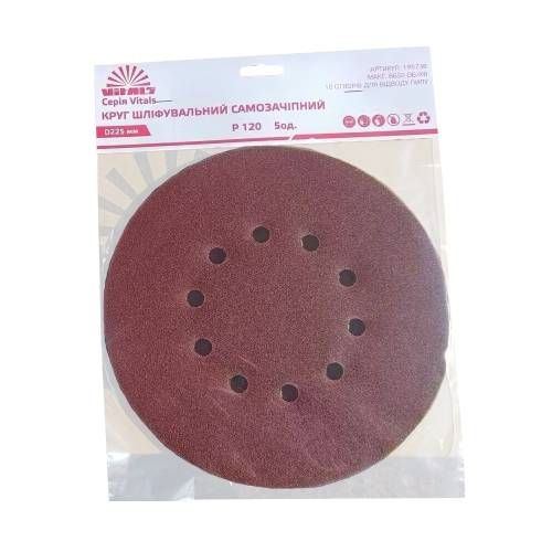 Опис круга шліфувального самозачіпного Vitals 225 мм, 10 отв., з. – 120, 5 од.