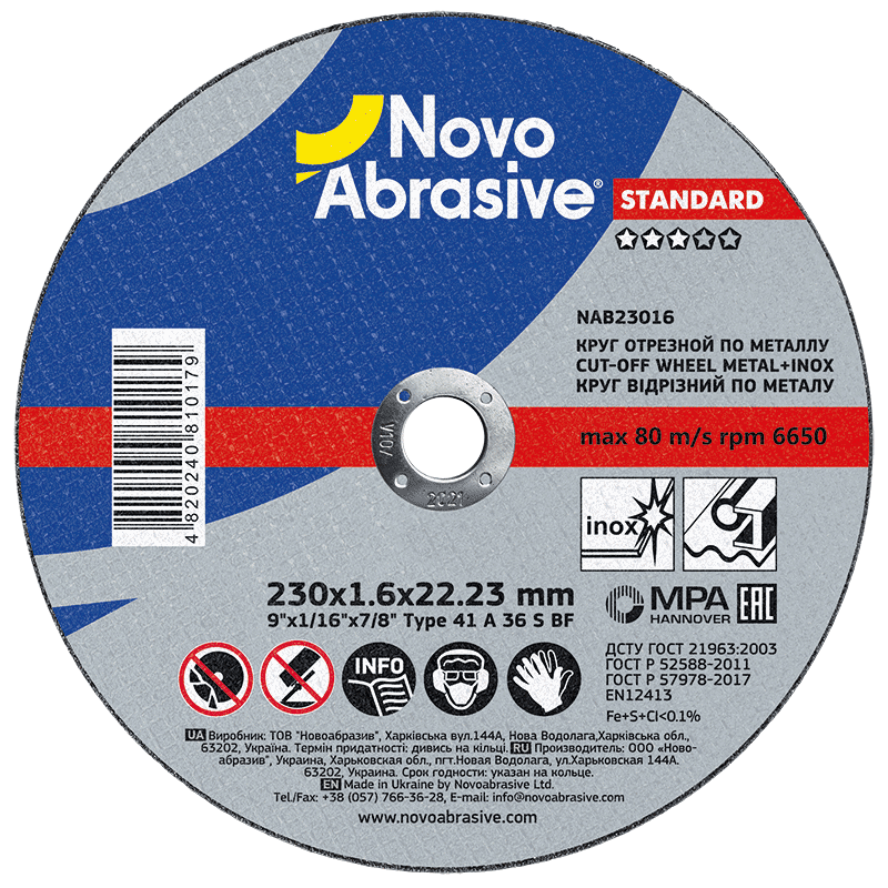 Круг відрізний для металу та нержавіючої сталі NovoAbrasive STANDARD 41 14А 230 1,6 22,23 має ще кілька унікальних властивостей та переваг, які роблять його незамінним інструментом у вашій роботі. Він є випробуваним і схваленим кваліфікованими фахівцями та має високу оцінку користувачів. Круг з легкістю справляється зі складними завданнями і забезпечує швидке та ефективне різання металу. Він має зручну форму, що робить його легким у використанні і забезпечує зручний захват. Круг має довгу експлуатаційну частоту і не вимагає частої заміни. Використання цього кругу дозволяє значно зекономити час та зусилля при різанні металу. Замовляйте круг відрізний для металу та нержавіючої сталі NovoAbrasive STANDARD 41 14А 230 1,6 22,23 і впевнено розраховуйте на його високу якість та надійність.