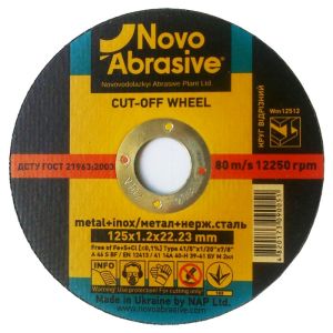 Відрізний круг по металу NovoAbrasive призначений для різання металевих деталей, труб і профілів. Використовується з кутовими шліфувальними машинами в будівництві, металообробці та ремонтних роботах.