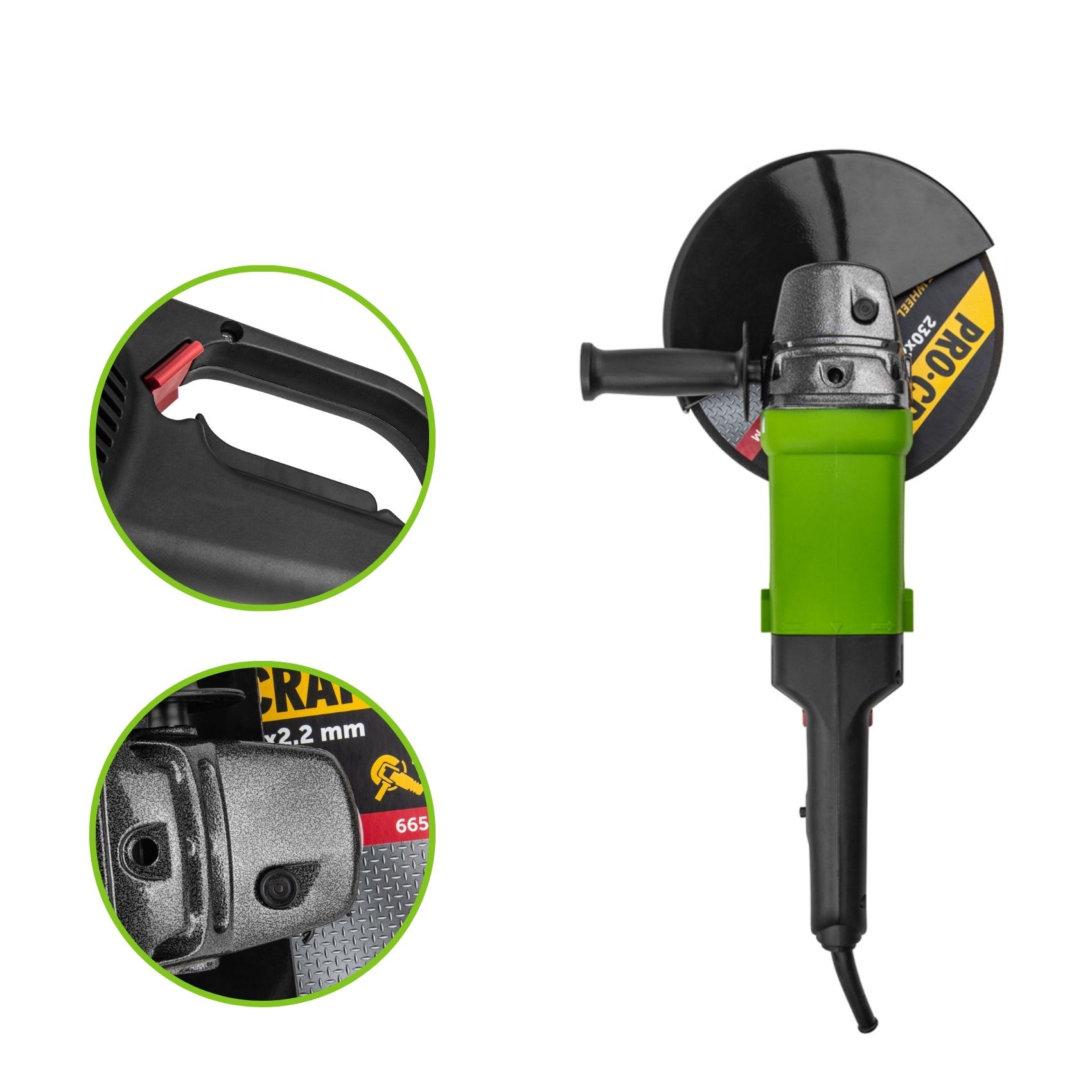 Кутошліфувальна машина Procraft PW2300 230 мм підходить для роботи з деревом, металом і пластиком. Вона забезпечить швидке і якісне шліфування поверхонь, що дозволить досягти бажаного результату у будь-якій сфері застосування.