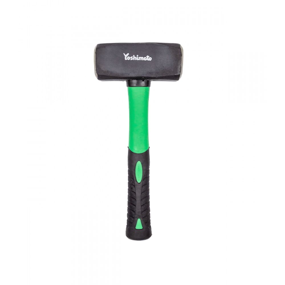 Кувалда Yoshimoto виготовлена з якісної сталі 45 із твердістю близько 48 HRC, що забезпечує високу ударну міцність та стійкість до зношування. Двокомпонентна ручка 2К зі скловолокна збільшеної товщини та гуми гарантує надійне утримання, підвищену міцність і ефективне поглинання вібрацій під час роботи. Завдяки великій масі кувалда оптимально підходить для забивання арматури, металевих опор, кілків та виконання важких ударних робіт.