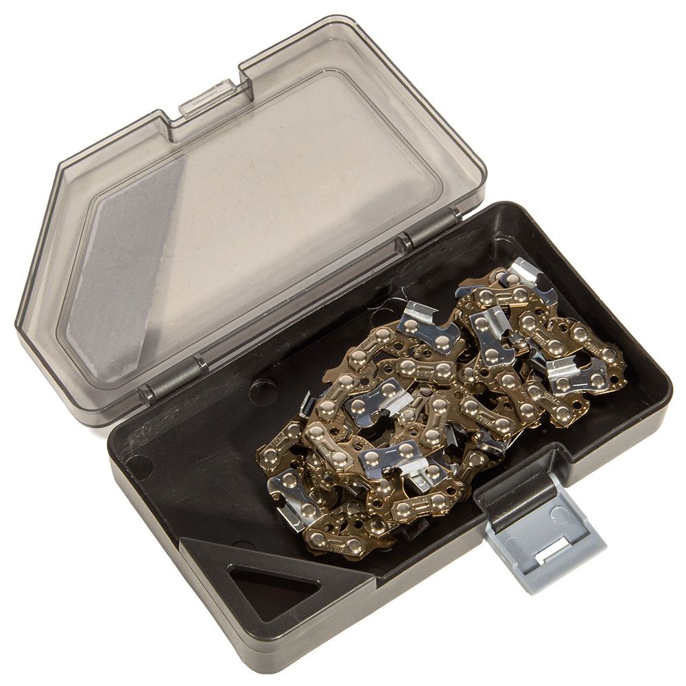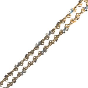 Ланцюг виготовлений із легованої гартованої сталі підвищеної міцності, а ріжучі зубці — зі сталі 68CrNiMo, що забезпечує високу твердість і тривалий ресурс. Точна геометрія зубців і збалансована конструкція сприяють чистому та швидкому різу, знижують навантаження на інструмент і мінімізують вібрацію.