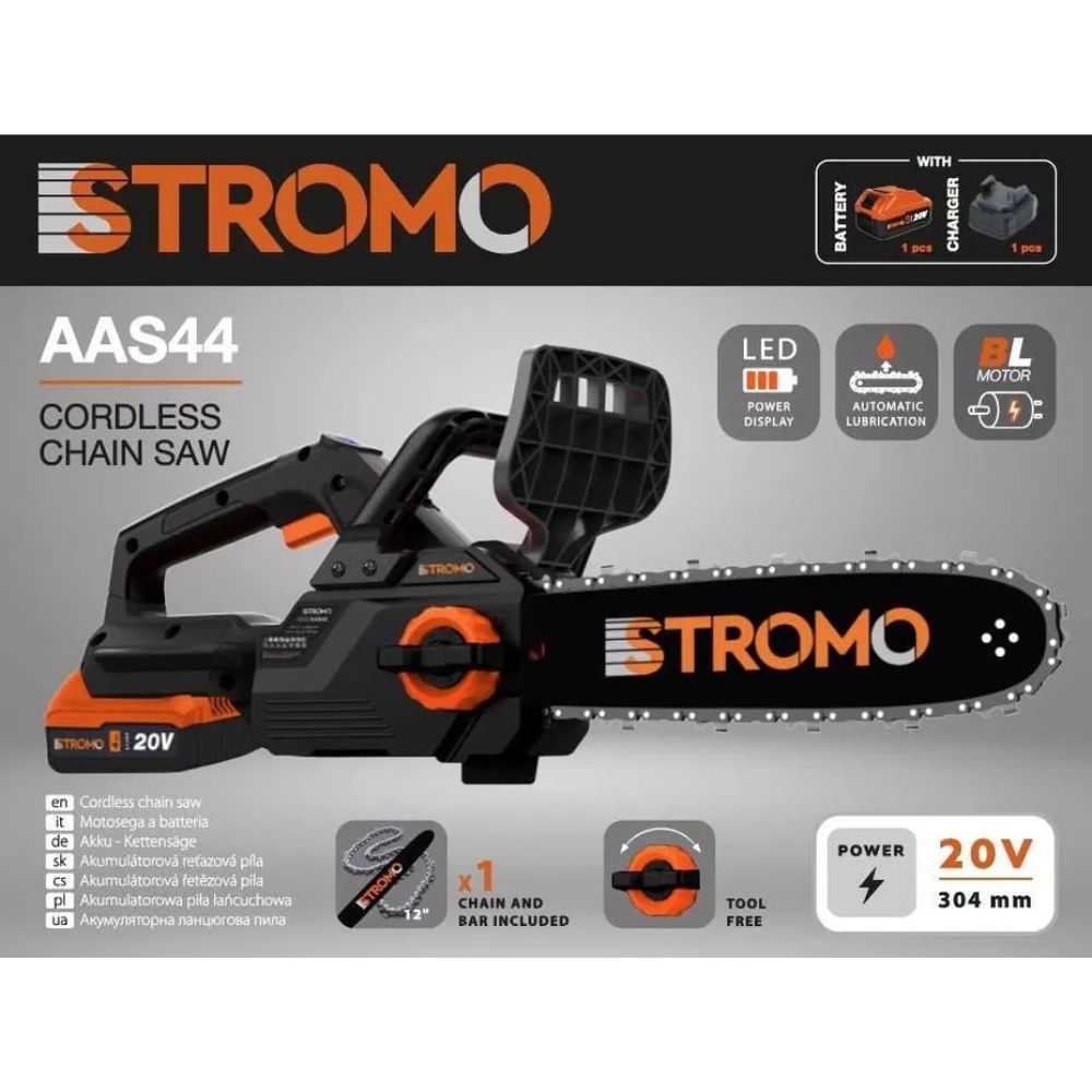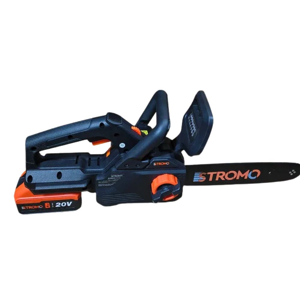Акумуляторна ланцюгова пила STROMO AAS44 призначена для розпилювання деревини, обрізання гілок та побутових садових робіт. Модель працює від акумуляторної системи 20V та оснащена безщітковим двигуном, що забезпечує високу продуктивність і тривалий ресурс. Пила має автоматичне змащення ланцюга та безключову систему натягу, що робить експлуатацію зручною та безпечною.