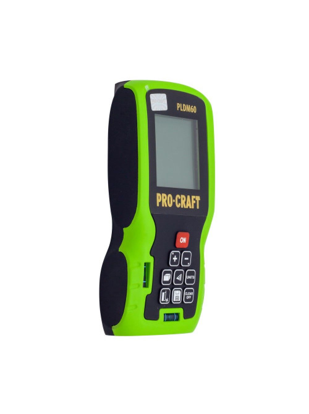 Лазерний далекомір Procraft PLDM60 – компактний та точний інструмент для вимірювання відстаней, площ та обсягів. Пристрій працює з лазером класу II, довжина хвилі 635 нм, потужність 1 мВт, забезпечуючи точність до ±1 мм.