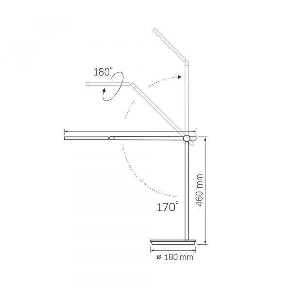 Конструкция позволяет вращать корпус на 170°, и рассеиватель на 180°, это в сою очередь очень удобно и экономит рабочее место днем и удобно для эксплуатации и транспортировки. Угол рассеивания света в данной настольной лампе составляет 120°. Лампа имеет достаточно большую подставку для максимальной устойчивости в любом положении плафона. Эффективный и надежный светодиодный светильник будет служить долго, что подтверждается 2-х летней гарантией.