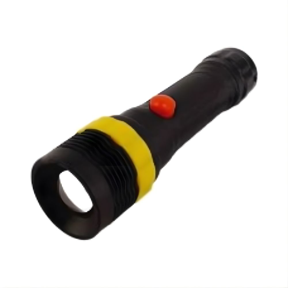 Корпус виготовлений з ударостійкого пластику, що забезпечує довговічність та зручність у користуванні. Ліхтар живиться від трьох батарейок типу AAA (не входять у комплект), має бічну кнопку керування та петлю для носіння.