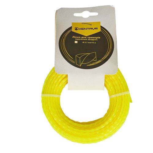 Тримерна ліска для тримерів Кентавр з перерізом кручений квадрат розміром 2,7 мм 15 м. Ця ліска має довжину 15 метрів і відрізняється особливим геометричним перерізом у вигляді крученого квадрата, що забезпечує високу міцність і тривалу експлуатацію. Вона підходить для використання з тримерами Кентавр і забезпечує високу ефективність під час роботи з різними типами рослинності. Цей продукт є надійним і простим у використанні, ідеально підходить для підтримки чистоти і охайного вигляду вашого саду або городу.