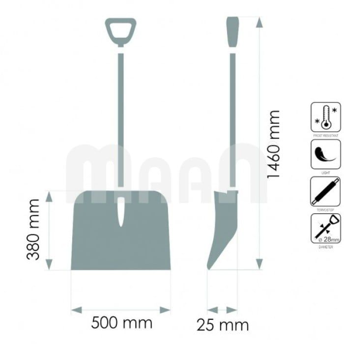 Лопата для чищення снігу MAAN 3719 - це надійний і зручний інструмент для очищення території від снігу. Виготовлена з високоякісних матеріалів, що забезпечує тривалу службу. Ідеально підходить для використання на садових ділянках, в дворах, на пішохідних доріжках та в інших місцях. Завдяки своїм розмірам (500х25х380/1460 мм) легко впорається з будь-яким обсягом снігу. Купуючи цю лопату, ви отримуєте надійний помічник у боротьбі зі снігом.