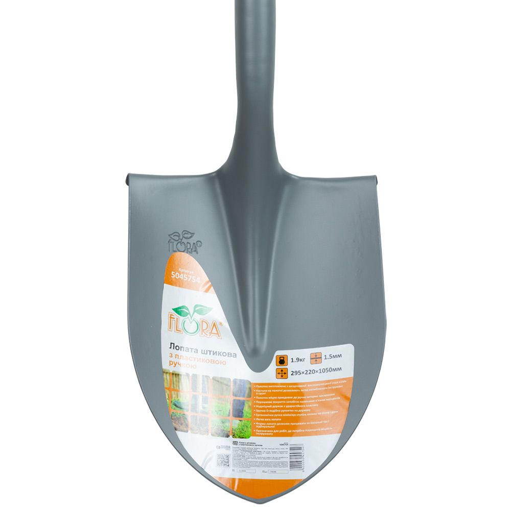 Лопата штикова з пластиковою ручкою 2952201050мм 1.9кг (американка) FLORA (5045754) це ручний інструмент, призначений для копання, розчищення або перенесення ґрунтів та інших сипучих і рихлих матеріалів.