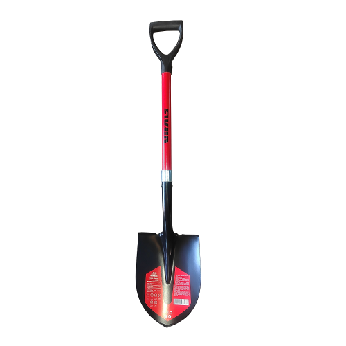 Двокомпонентне руків’я з фібергласу (скловолокна) міцне та стійке до підвищених навантажень. Держак має невелику вагу і не схильний до появи іржі, а в холодну пору року забезпечує термозахист рук. Держак фіксується до леза лопати за допомогою заклепок, що забезпечує надійне з'єднання та стійкість до вібрації. Діаметр руків’я становить 32 мм, що забезпечує зручний захват руками та контроль над лопатою.