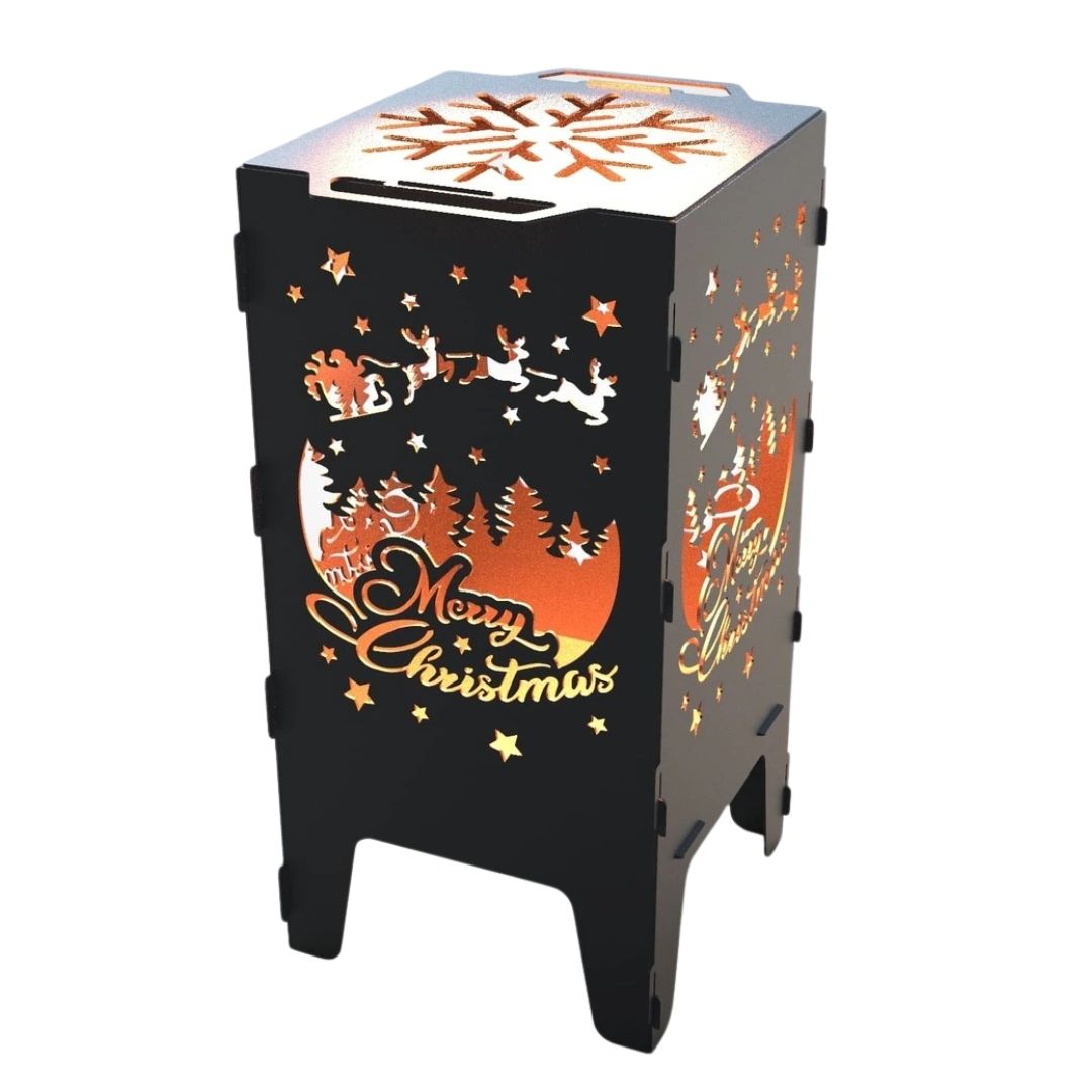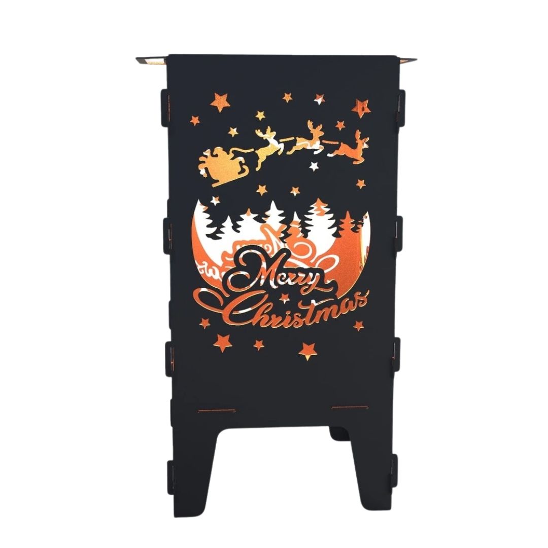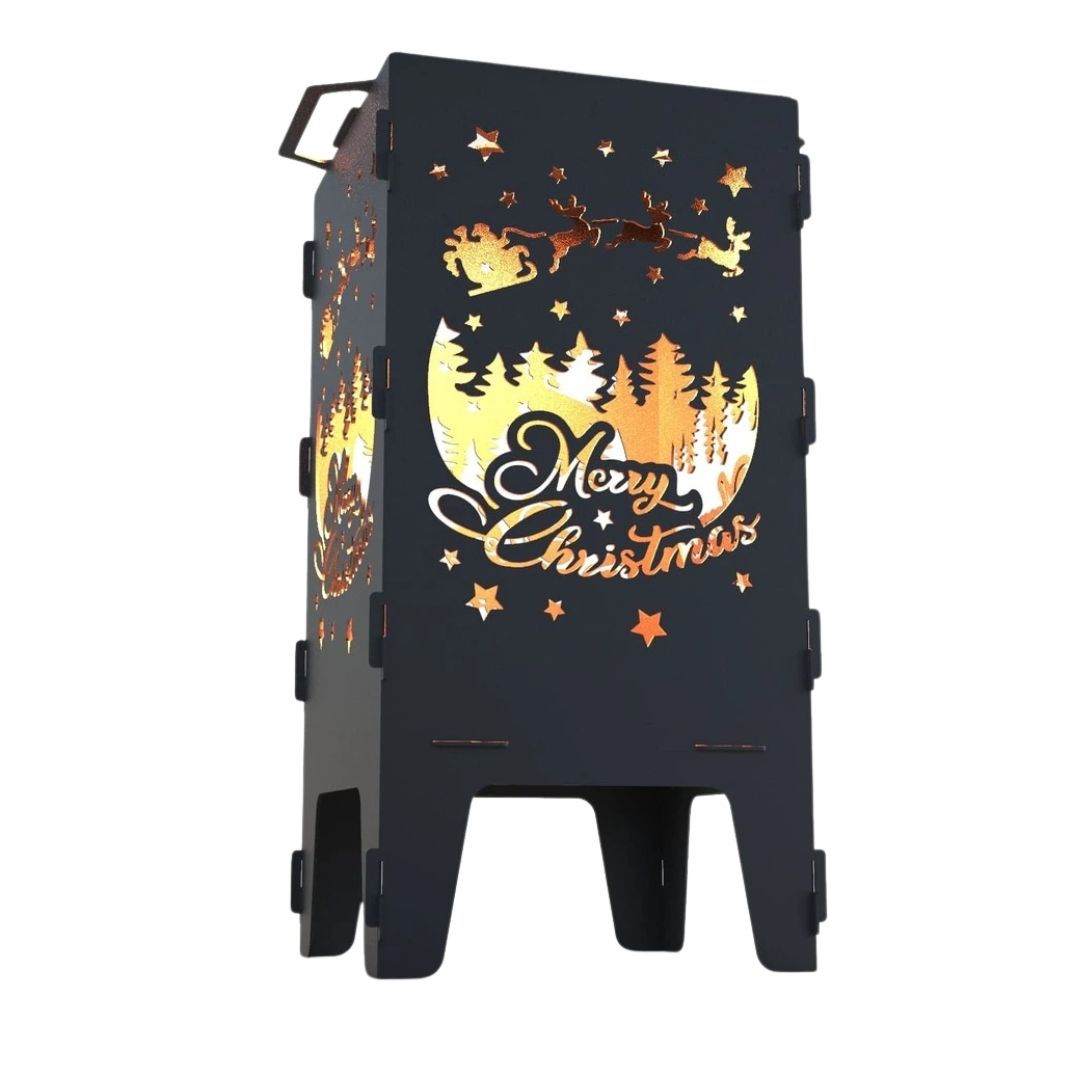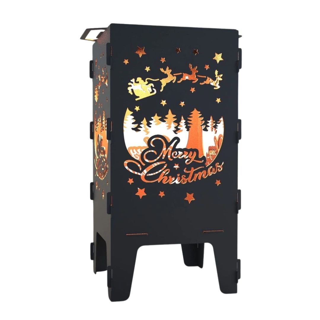 Мангал-барбекю Carino З Різдвом — розбірна модель з тематичним дизайном, що поєднує функціональність і декоративний вигляд. Вирізи з різдвяними мотивами створюють м’який світловий ефект під час горіння та додають атмосферності зоні відпочинку. Метал товщиною 3 мм забезпечує надійність і тривалий термін служби.