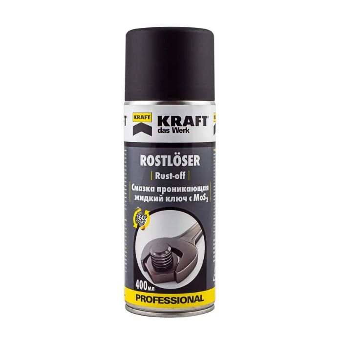 Мастило проникаюче з перетворювачем іржі "Рідкий ключ" з MoS2 ТМ KRAFT в аерозольній упаковці 400 мл. є універсальним мастилом на основі синтетичного масла. Це мастило має проникаючу консистенцію у вигляді аерозолю, що дозволяє зручно та ефективно його наносити на іржаві поверхні. Завдяки вмісту MoS2, це мастило має високу проникаючу здатність і ефективно проникає у важкодоступні місця, розслабляючи заржавлені деталі і знижуючи тертя. Також це мастило створює захисне покриття на оброблюваній поверхні, запобігаючи подальшій корозії. Застосовується у різних галузях, включаючи будівництво, автомобілебудування, сільськогосподарську техніку і багато іншого. Це мастило має численні переваги, такі як висока проникаюча здатність, зменшення тертя і зарожування, а також можливість застосування на різних матеріалах, включаючи метал, пластик і гуму. Крім того, це мастило не містить військової тематики або агресивних словосполучень. Тому воно є безпечним для використання в будь-яких умовах.