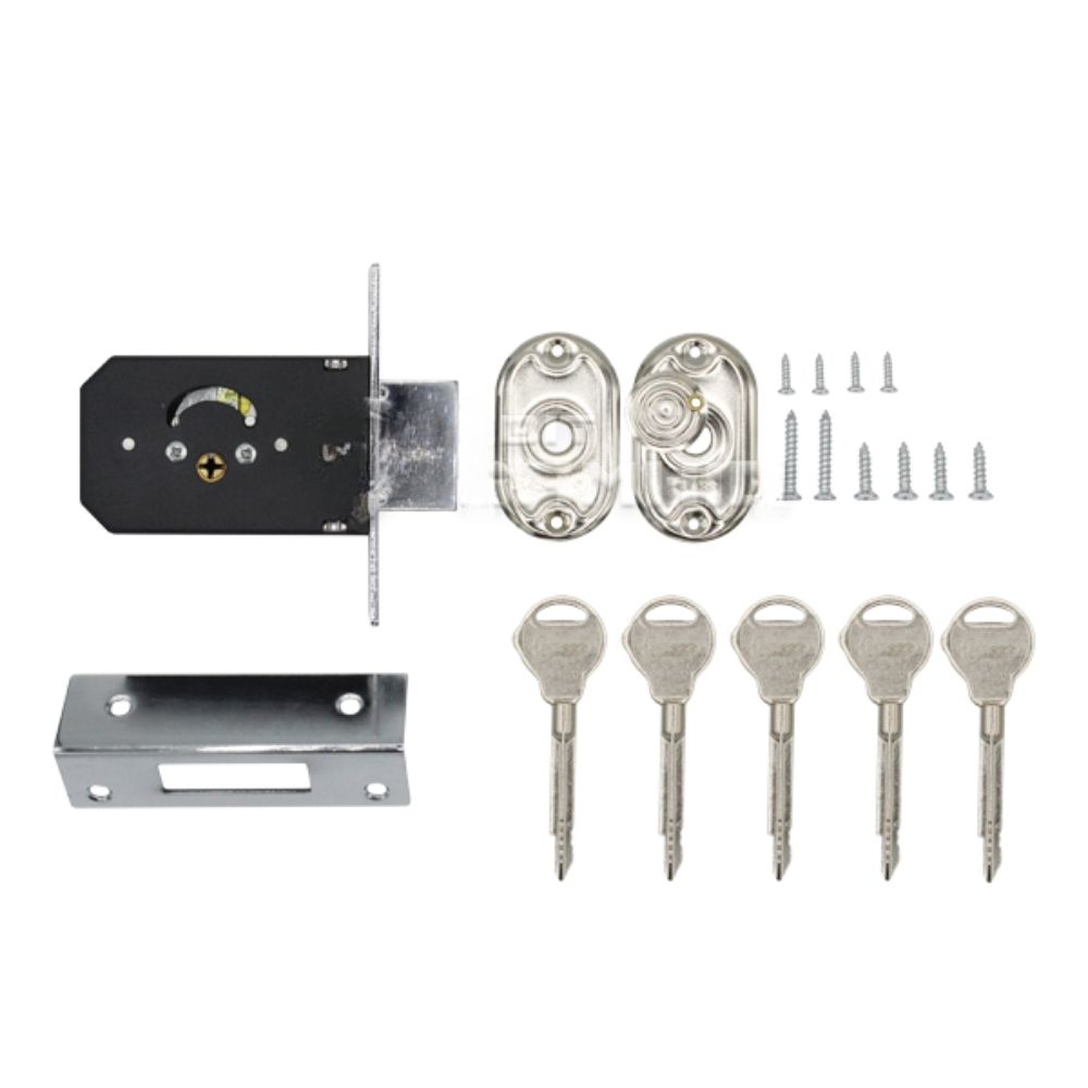 Механізм замка CLASS 156F — надійний допоміжний замок, який зазвичай встановлюється у верхній частині вхідних дверей у парі з основним. Сталевий ригель із гальванічним покриттям забезпечує міцну фіксацію полотна, а хромована торцева планка додає охайного вигляду та захищає від корозії.