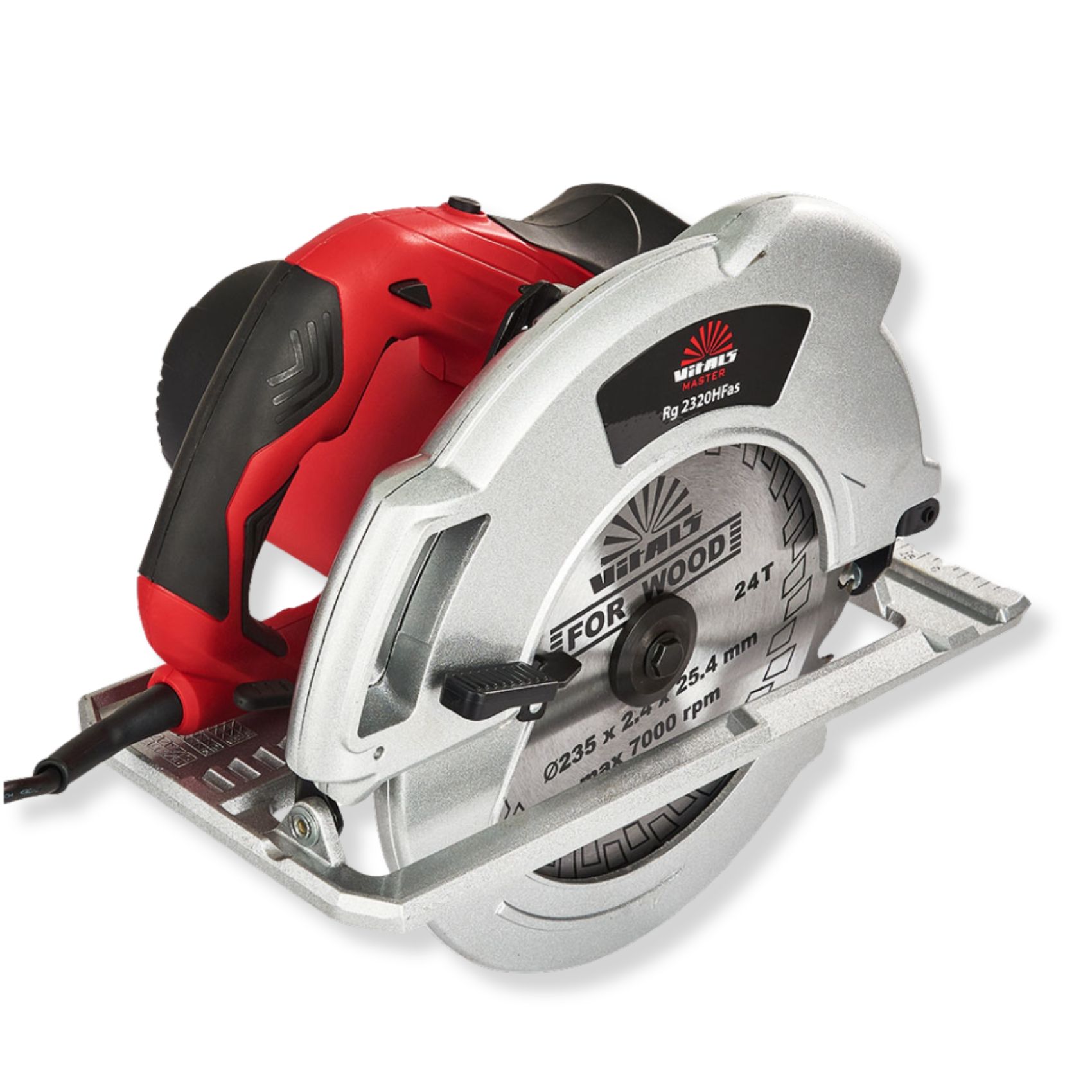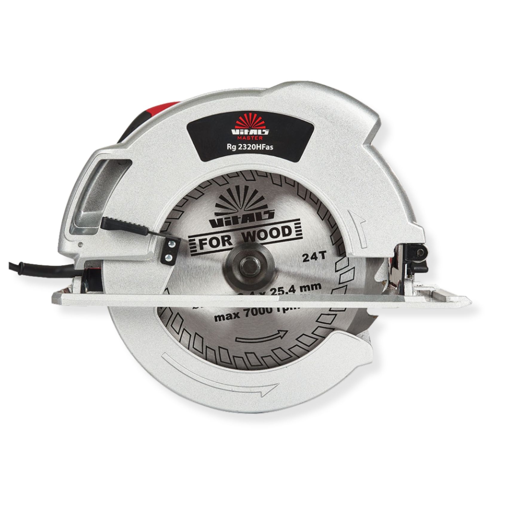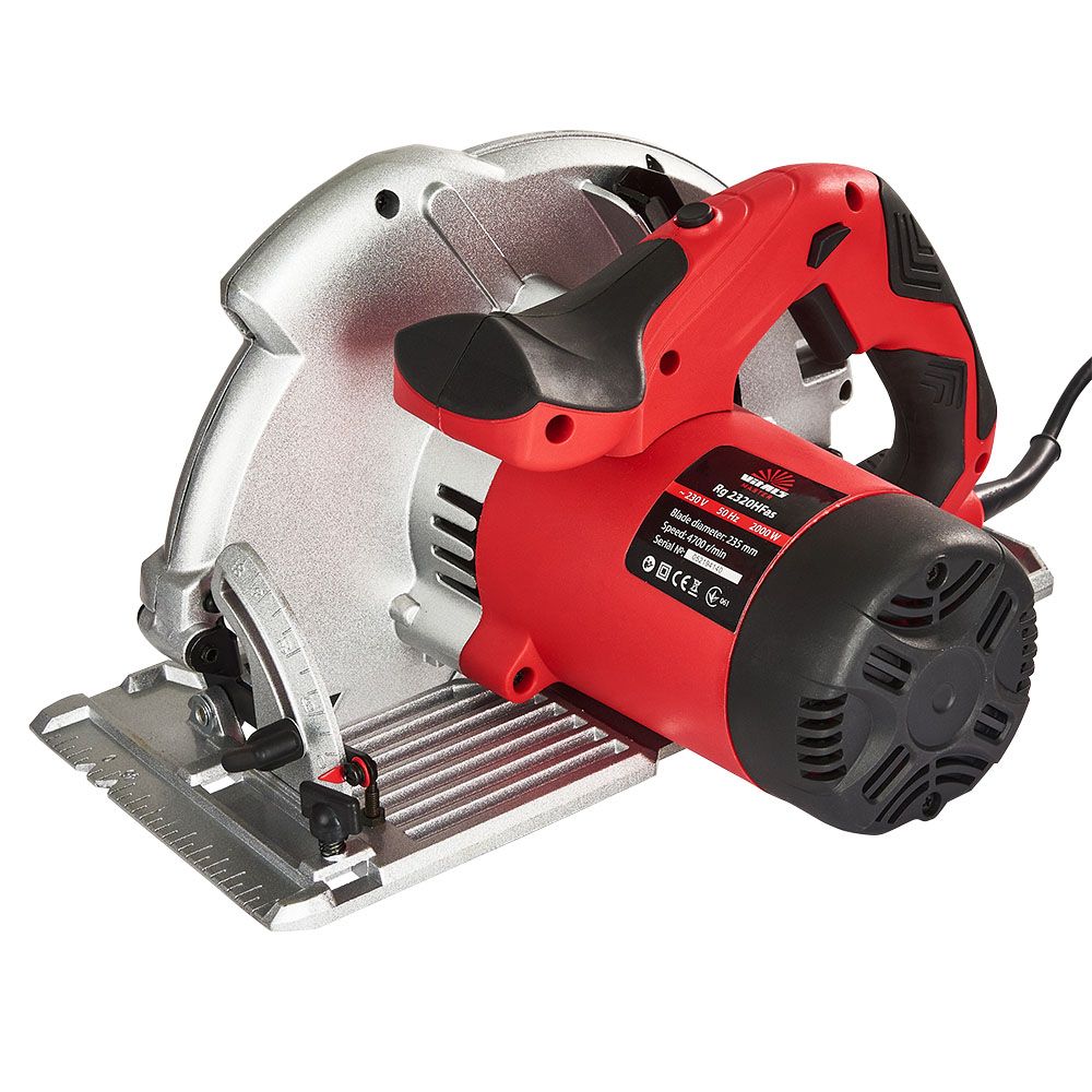 Циркулярна пила Vitals Master Rg 2320HF as - це ручний інструмент з високою потужністю 2000 Вт, призначений для різання дерев'яних матеріалів. Завдяки своїй плавному пуску, пила поступово набирає швидкість, що забезпечує точність і безпеку при роботі. Глибина пропилу під кутом 90° становить 83 мм, а під кутом 45° - 62 мм, що дозволяє використовувати пилу для різних завдань в будівництві, ремонті і столярному майстерні. Ця пила працює від мережі живлення.