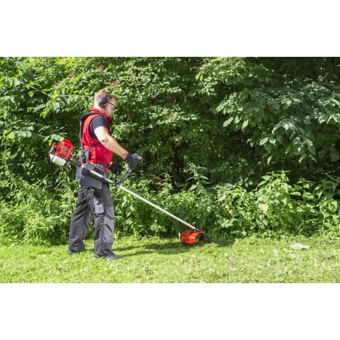 Ця мотокоса має вбудований захист від перегріву, можливість регулювання висоти різання, а також легкий доступ до резервуару для палива для зручного заправлення.